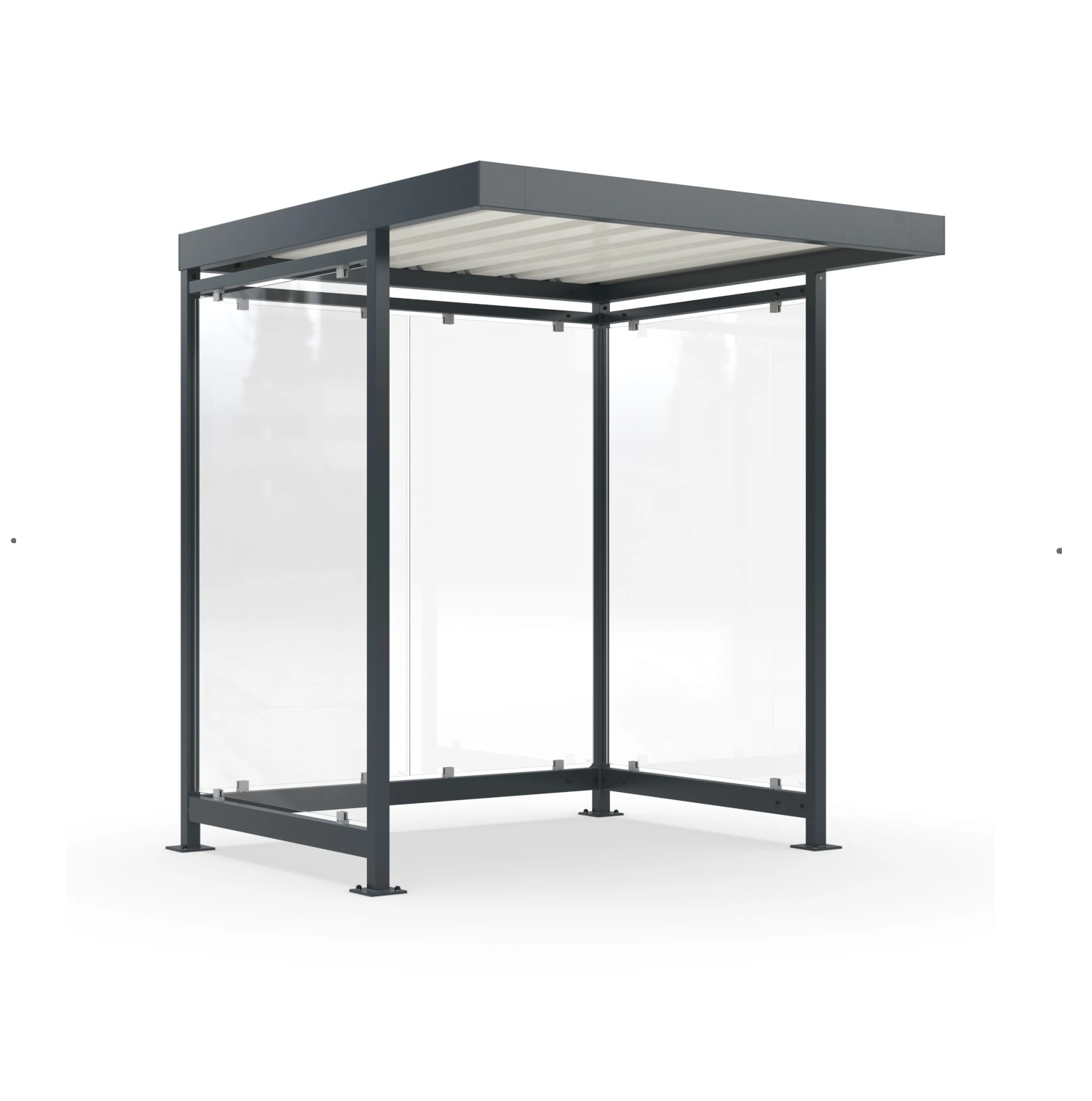 Structura modulară și acoperită oferă o soluție versatilă și robustă, ideală nu doar ca spațiu de fumat controlat, ci și ca adăpost eficient în spațiile publice. Designul durabil asigură protecție optimă împotriva tuturor condițiilor meteorologice, făcând-o potrivită ca stație de autobuz, zonă de repaus sau punct de întâlnire, indiferent de anotimp.