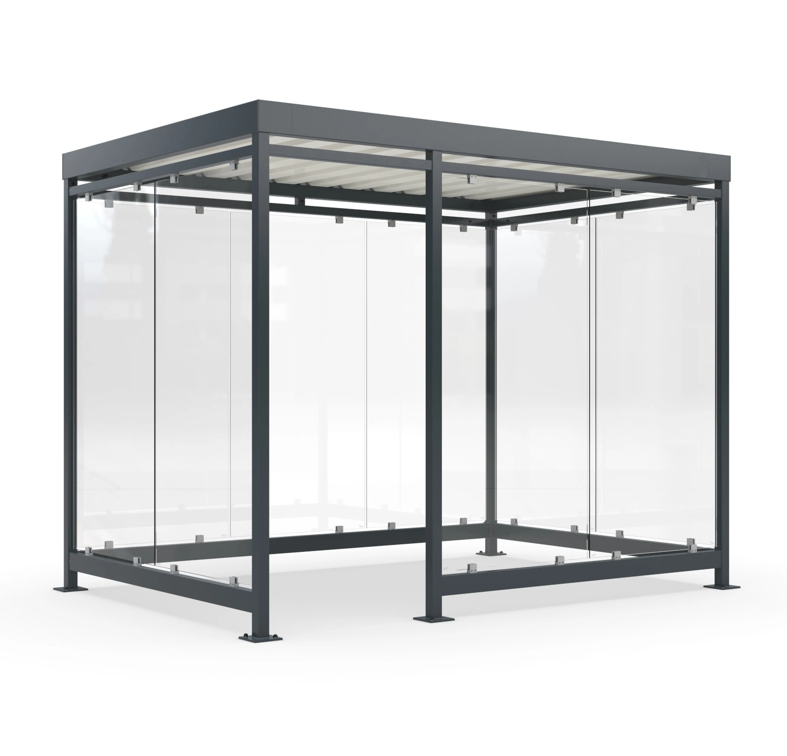 Structura modulară și acoperită oferă o soluție versatilă și robustă, ideală nu doar ca spațiu de fumat controlat, ci și ca adăpost eficient în spațiile publice. Designul durabil asigură protecție optimă împotriva tuturor condițiilor meteorologice, făcând-o potrivită ca stație de autobuz, zonă de repaus sau punct de întâlnire, indiferent de anotimp.