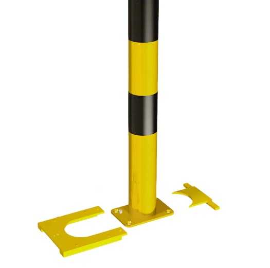 Montajul se realizează rapid și sigur pe suprafețe din beton sau asfalt, utilizând o placă metalica de bază robustă. Marcați mai întâi poziția găurilor, apoi executați patru găuri. Poziționați stâlpul și fixați-l cu patru ancore tip conexpand sau ancora chimica. Dupa montare organele de asamblare se strâng ferm pentru a asigura o stabilitate optimă. Această metodă de montare garantează o instalare eficientă, durabilă și potrivită pentru zone cu trafic intens. Ancorarea solidă oferă protecție de lungă durată împotriva eventualelor coliziuni.